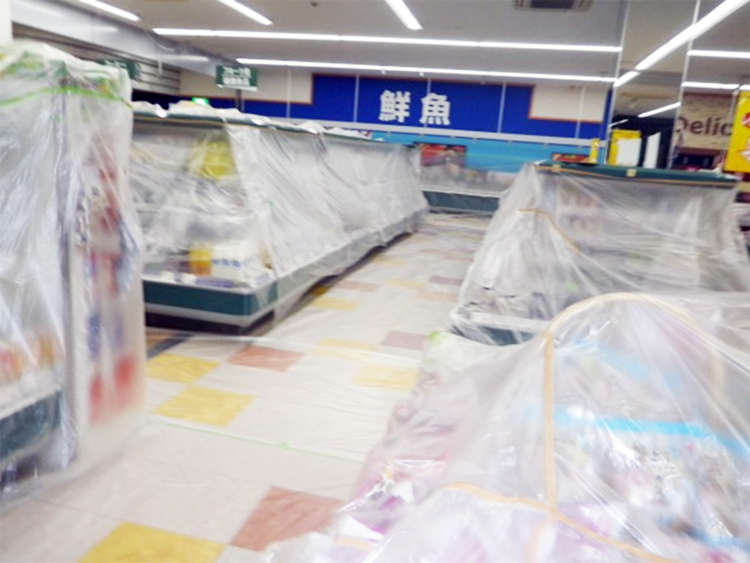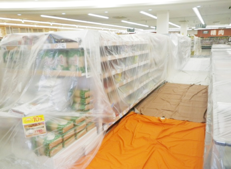 商品の汚損を防止する為、安全対策を十分に行ってからの作業になります。